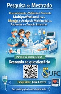 O Conselho Regional de Enfermagem do Amapá (Coren-AP) informa aos profissionais de Enfermagem a divulgação de pesquisa científica vinculada ao Programa de Pós-Graduação em Ciências Farmacêuticas da Universidade Federal do Ceará (UFC). O estudo é conduzido pelo mestrando Júlio Castro e tem como objetivo validar um protocolo de analgesia multimodal voltado a pacientes críticos internados em Unidade de Terapia Intensiva (UTI).